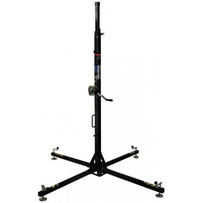 VMB TE-06B 4.6m/125kg ALS Black TE-06Max. height 5m (16.4′) The TE-06 is a top-loading, telescopic lifter designed to lift a maximum weight of 125kg (275lb) to a maximum height of 5m (16.4ft) Manufactured in Our factory, in Valencia (Spain) it is comprised of three premium grade steel masts finished in black, epoxy, powder coated paint for greater resistance to the elements for both indoor and outdoor use. Operated by an AL-KO winch with automatic brake and guided through our custom-made bearing pullies via a galvanized steel cable. Our patented ALS (Auto Lock Security) system ensures maximum safety. The lift is automatically locked at intermittent heights via the ALS bolt so that the lifter does not have to rely on the cable for security making it impossible for the load to fall. 2 fixed castors are located on the base to transport the lifter, whilst tilted. A spirit level is also located on the main mast for levelling orientation during set-up. A number of accessories for the TE-06 are available and can be viewed below.