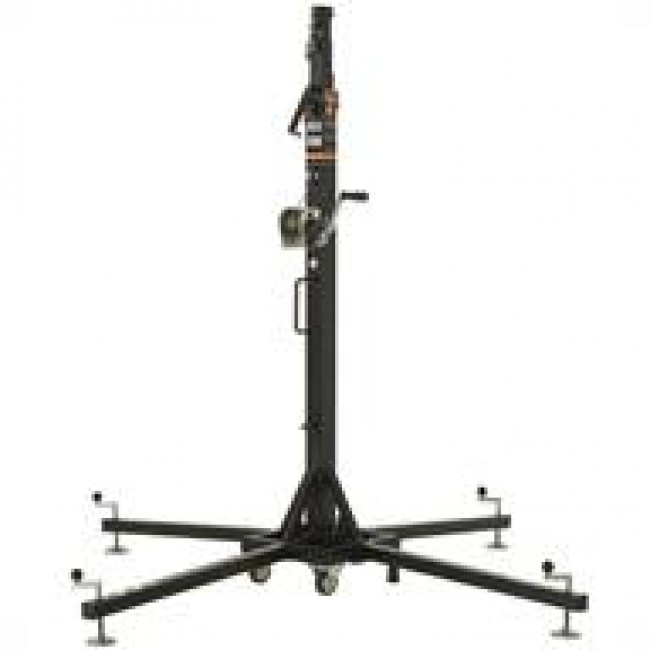 VMB TE-064B 5.35m/150kg ALS Black TE-064Max. height 5.35m (17.5′) The TE-064 is a top-loading, telescopic lifter designed to lift a maximum weight of 150kg (331lb) to a maximum height of 5.35m (17.5ft) Manufactured in Our factory, in Valencia (Spain) it is comprised of four premium grade steel masts finished in black, epoxy, powder coated paint for greater resistance to the elements for both indoor and outdoor use. Operated by an AL-KO winch with automatic brake and guided through our custom-made bearing pullies via a galvanized steel cable. Our patented ALS (Auto Lock Security) system ensures maximum safety. The lift is automatically locked at intermittent heights via the ALS bolt so that the lifter does not have to rely on the cable for security making it impossible for the load to fall. The lifter is both easy to transport and store due to its compact steel base, with pockets for the outriggers, each with their own swivel leveller with non-slip rubber base. Four 360º first grade, durable castors are fitted easing the transport of the lifter. A spirit level is also located on the main mast for levelling orientation during set-up. A number of accessories for the TE-064 are available and can be viewed below.