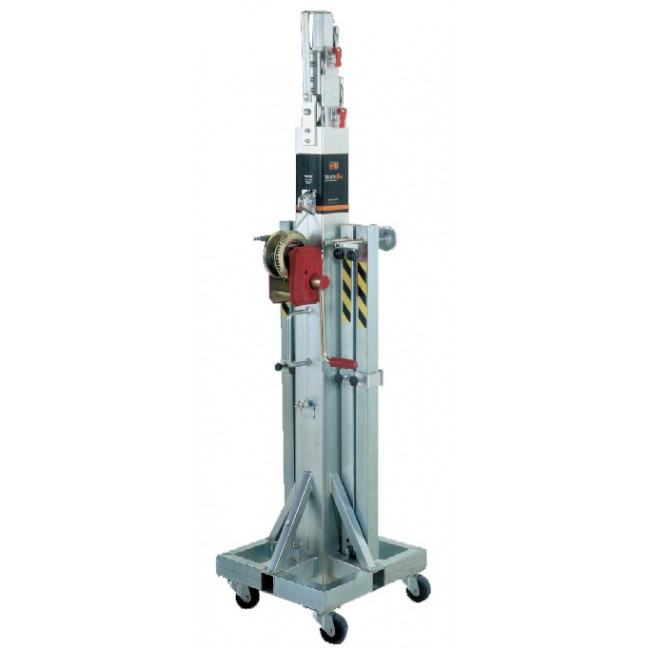 VMB TE-076S 6.5m/220kg ALS Silver TE-076Max. height 6.5m (21.3′) The TE-076 is a top-loading, telescopic lifter designed to lift a maximum weight of 220kg (485lb) to a maximum height of 6.5m (21.3ft) Manufactured in Our factory, in Valencia (Spain) it is comprised of five premium grade steel masts finished in black, epoxy, powder coated paint for greater resistance to the elements for both indoor and outdoor use. Operated by an AL-KO winch with automatic brake and guided through our custom-made bearing pullies via a galvanized steel cable. Our patented ALS (Auto Lock Security) system ensures maximum safety. The lift is automatically locked at intermittent heights via the ALS bolt so that the lifter does not have to rely on the cable for security making it impossible for the load to fall. The lifter is both easy to transport and store due to its compact steel base, with pockets for the outriggers, each with their own swivel leveller with non-slip rubber base. Four 360º first grade, durable castors are fitted easing the transport of the lifter. A spirit level is also located on the main mast for levelling orientation during set-up. A number of accessories for the TE-076 are available and can be viewed below.