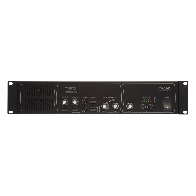 The Cloud VMA240 is an cost-effective mixer-amplifiers for use in all types of commercial premises. It has been designed to be as simple to install and operate as possible, but offers a useful range of features and configuration options. The units are mono power amplifiers combined with a simple mixer stage. The output may be used to drive either low-impedance loudspeakers directly (4 ohms minimum) or 25/70/100 V-line loudspeaker distribution systems.