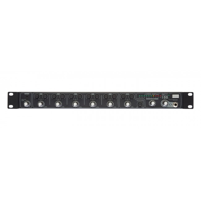 The MX155 is a 7-Channel mic/line mixer with 5 multi-purpose mic/line inputs, one dedicated microphone input and talk-over feature. All inputs feature EQ’s and Gain control. The balanced output is provided via Euroblock connector. Remote muting and emergency signal replay facilitate the use in installed sound systems.