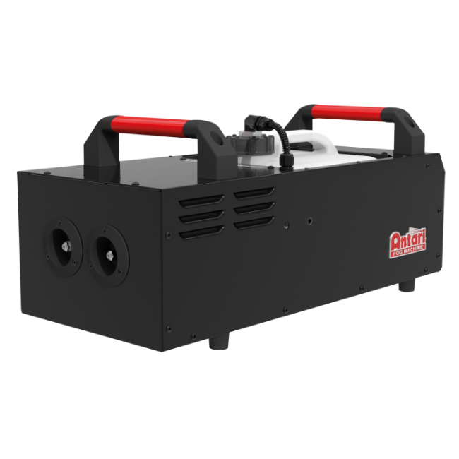 The M-12 features a dual output nozzle and dual pump system that can be controlled either independently or simultaneously, allowing a wider range of volume adjustment and output flexibility. Automatic sequential pump operation can produce endless volumes of fog in continuous mode, making the M-12 the highest output fog machine ever created by Antari. Versatile control options include a built-in electronic timer, DMX with RDM, stand-alone operation and an optional wireless remote control. The M-12 is flexible enough for small theatres and powerful enough for the largest arenas.