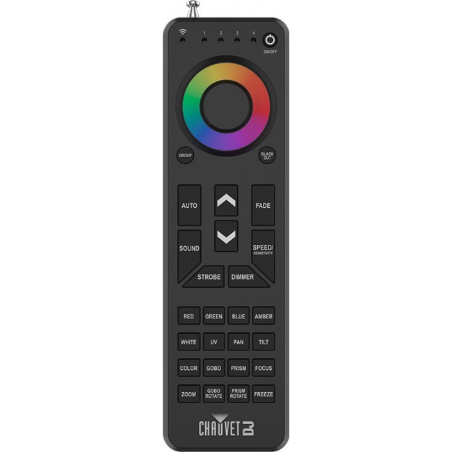 Unprecedented lighting control power is in the palm of your hand with RFC-XL, a handheld remote control for compatible RF-enabled lighting fixtures. The RF signal is omnidirectional and doesn’t require line-of-sight operation. RFC-XL works with different fixture types such as washes and moving heads and controls up to 4 different fixture groups simultaneously. Rubberized and backlit buttons ensure they are accessible in dark environments and a convenient color picking wheel lets you dial in just the right colors with the swipe of a finger. The telescopic antenna ensures the signal reaches its destination.