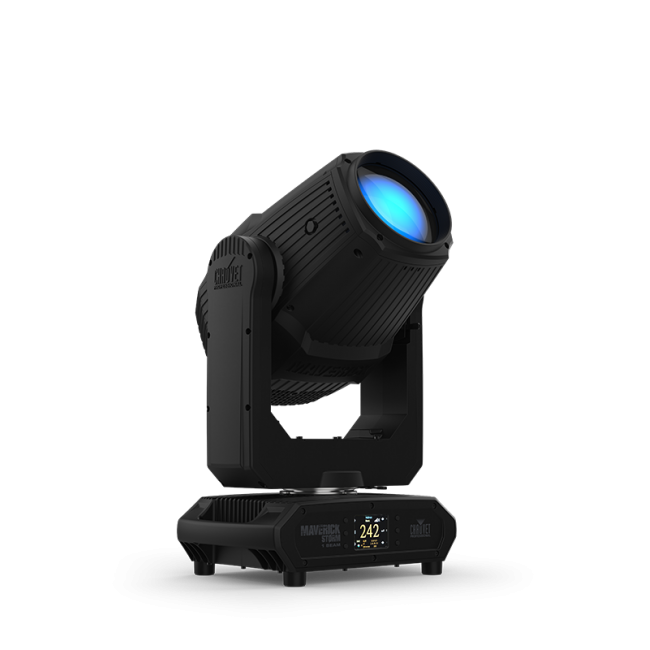 Maverick Storm 1 Beam brings CMY color mixing and stadium-scale output in a lightweight compact alloy-armored IP65-rated fixture that delivers sharp beam effects and precise color. With an optical system designed to capture the full force of its SIRIUS HRI 310W source, this powerful beam fixture slices through every other effect. Tightly focused aerials and dual layerable independent prisms create massive visual effects, with frost to fine-tune looks and light distribution. Maverick Storm 1 Beam speaks DMX, ArtNet, sACN, RDM and W-DMX.