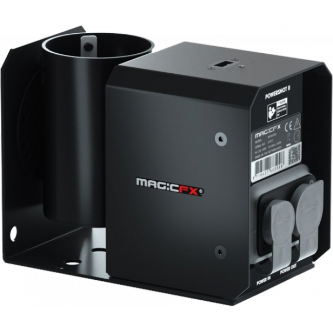 The POWERSHOT II is a compact shot unit that fires electric confetti or streamer shots. Place it on stage or mount it on a truss. Plug in an electric shot, set the angle and fire away! Shoot confetti up to 6 or 12 meters and streamers from 12 up to 20 meters in the sky.