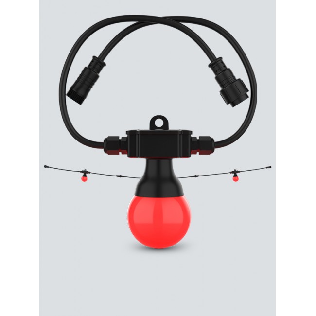 Festoon 2 RGB EXT increases the length of Festoon 2 RGB to achieve longer runs. Set up and connection to an existing Festoon 2 RGB is effortless. Rated for temporary outdoor use, Festoon 2 RGB EXT is perfect for festivals or other exterior events. Festoon 2 RGB EXT fits best in CHS-50 gear bag.