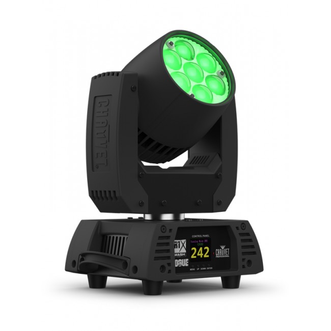 Rogue R1X Wash distinguishes itself by offering a combination of performance features unique to its price class. Powered by seven RGBW 25 W quad-LEDs, this bright and versatile moving wash zoom fixture features a unique “bubble” lens design for excellent color rendering and stunning visual effects. Other standout features include an incredible 7.9° to 62.7° zoom range, incredibly fast and smooth pan and tilt movements, simple and complex DMX channel profiles, plus 3-pin and 5-pin DMX connectors. Versatility, value and performance make this fixture a welcome addition to any touring rig or permanent installation.